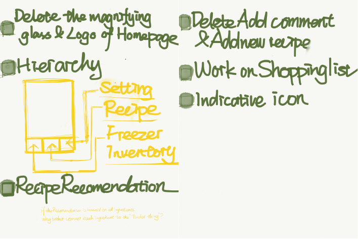 -Reconsidered the first screen when first-time users start using this app. Lead them to add their ingredients before browsing the recipes.